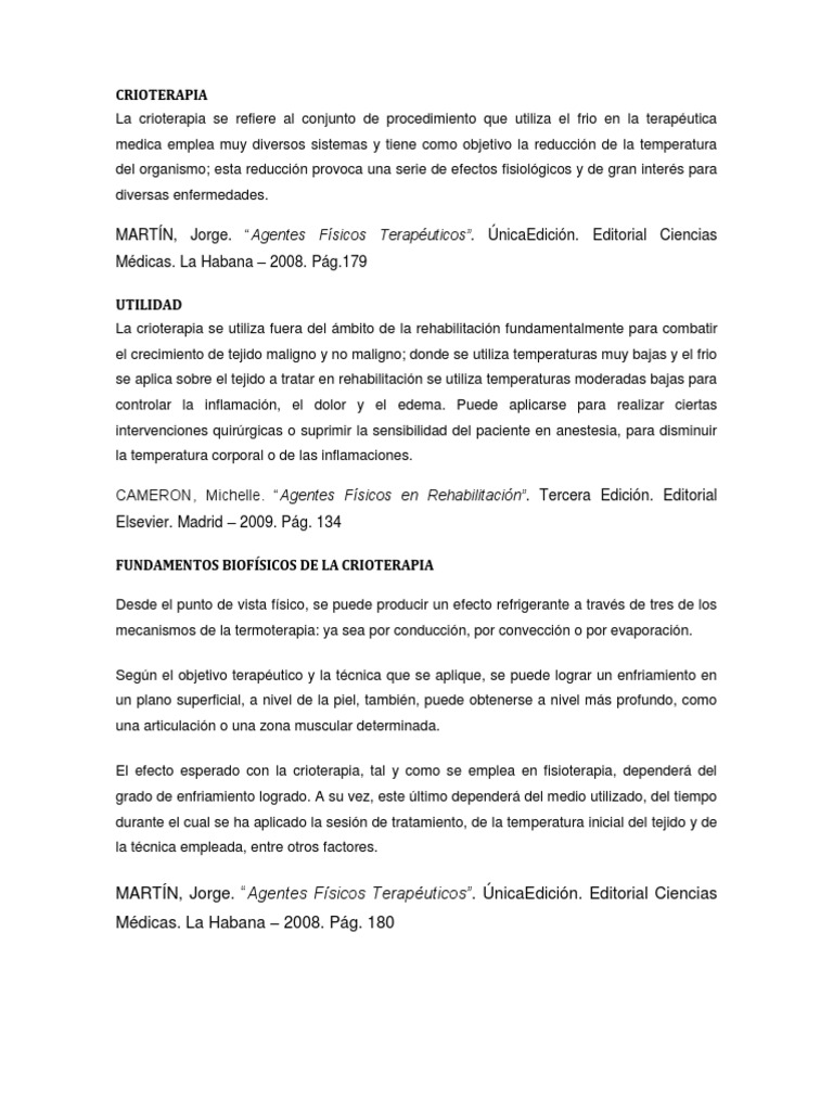 La crioterapia se refiere al conjunto de procedimiento que utiliza el frio en la teraputica
