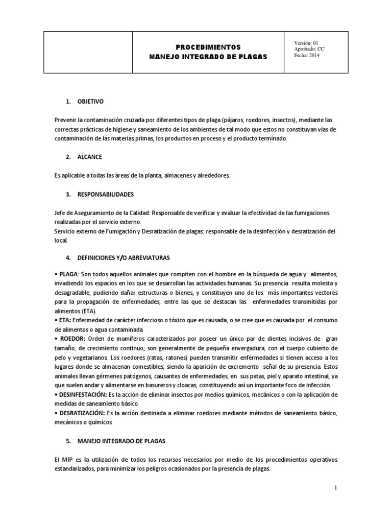 estarn identificadas; as mismo la empresa adquirir los productos para el control de plagas, los