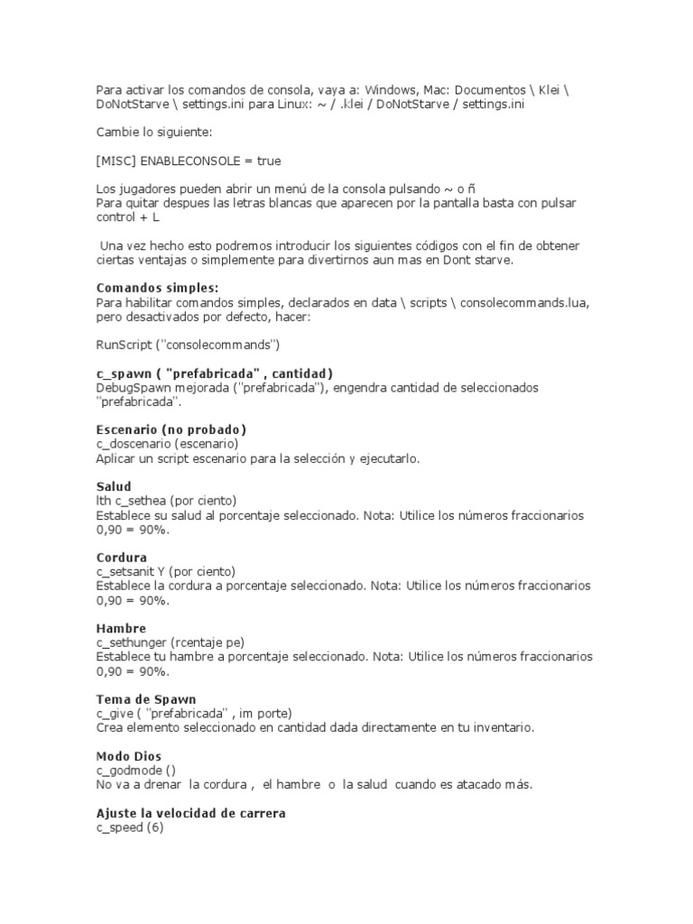 Para activar los comandos de consola, vaya a: Windows, Mac: Documentos \ Klei \