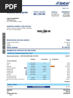 prestación de los servicios. Si el estado de cuenta, amparado en esta factura, es pagado con documentos, no se considerará al suscriptor exento de