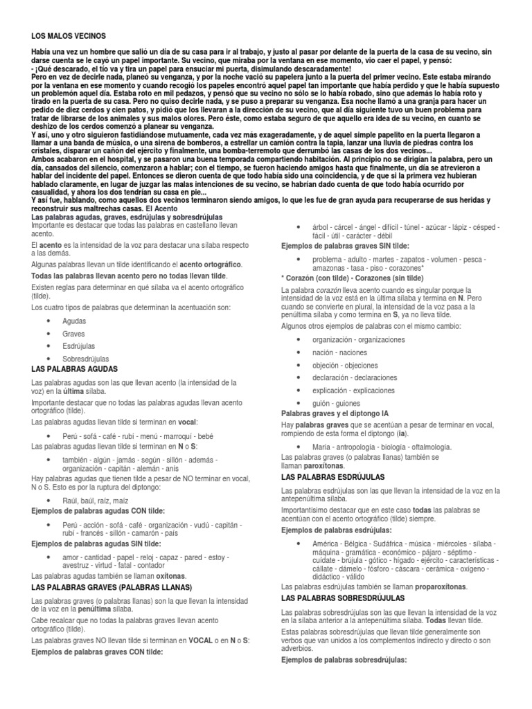 Las palabras agudas, graves, esdrjulas y sobresdrjulas