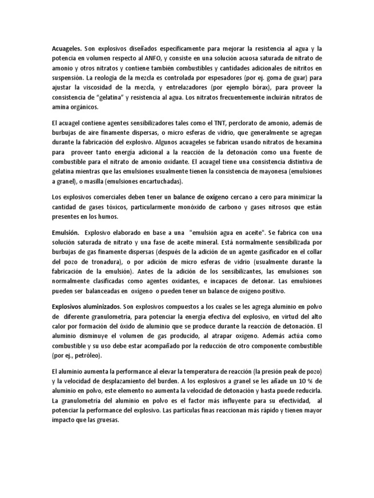 de diferente granulometra, para potenciar la energa efectiva del explosivo, en virtud del alto