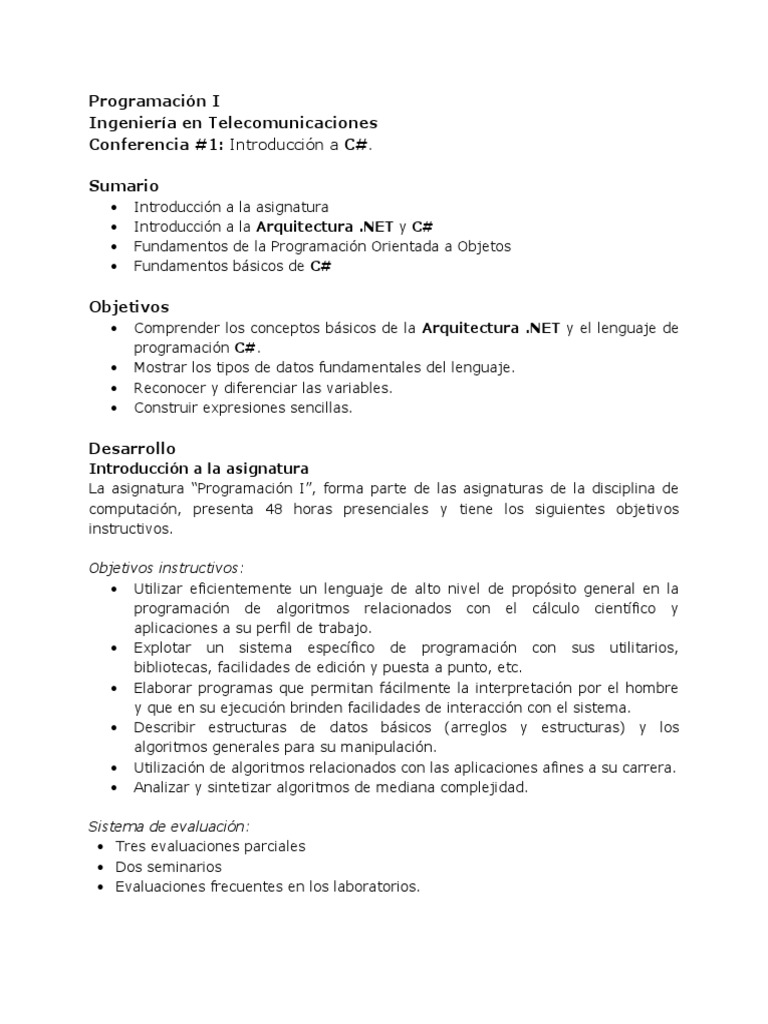 Conferencia #1: Introduccin a C#.