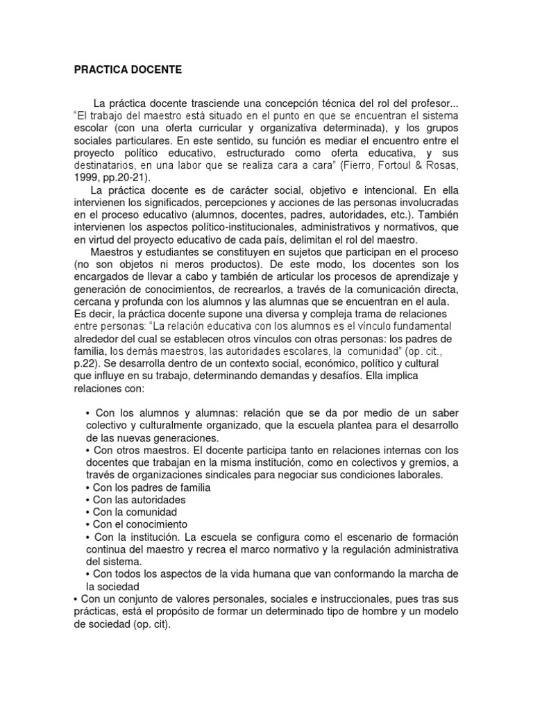 Es decir, la prctica docente supone una diversa y compleja trama de relaciones