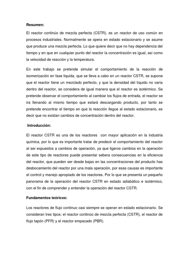 El reactor contino de mezcla perfecta (CSTR), es un reactor de uso comn en