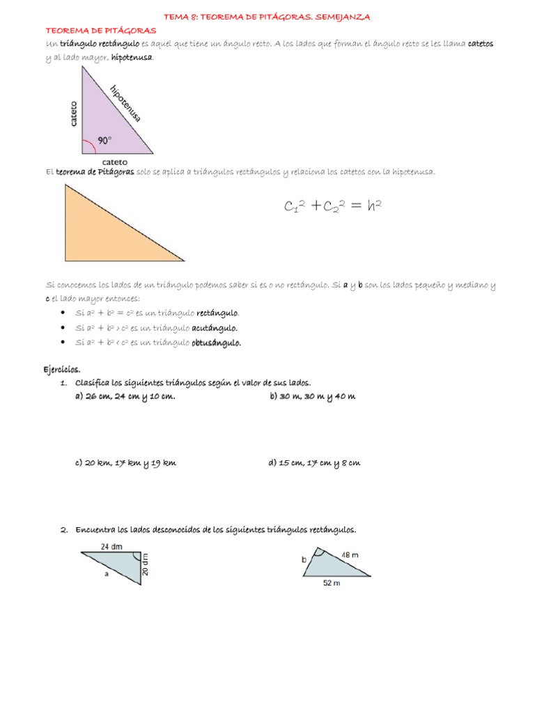El teorema de Pitgoras solo se aplica a tringulos rectngulos y relaciona los catetos con la hipotenusa.