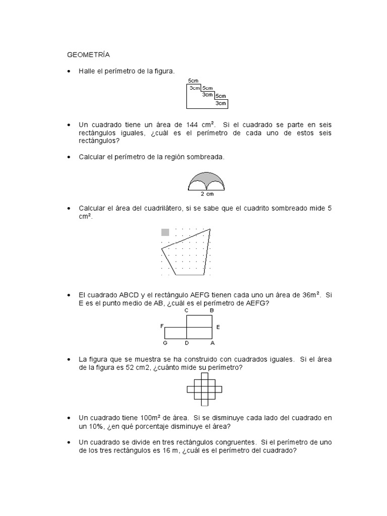 Un cuadrado tiene un rea de 144 cm2. Si el cuadrado se parte en seis