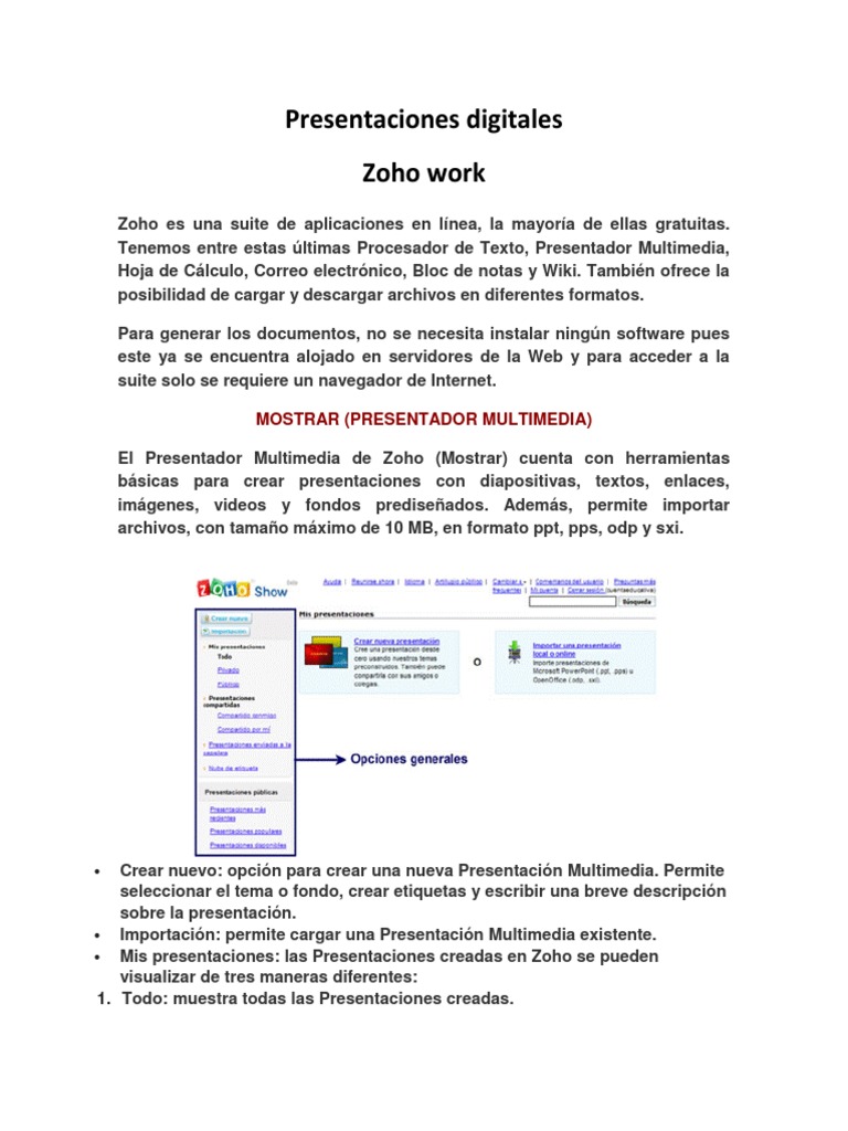 Presentaciones pblicas: Presentaciones publicadas en Zoho que se pueden