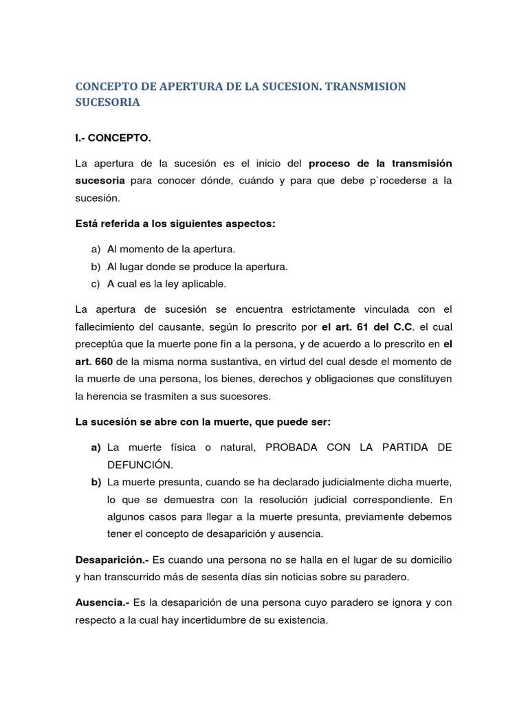 CONCEPTO DE APERTURA DE LA SUCESION.