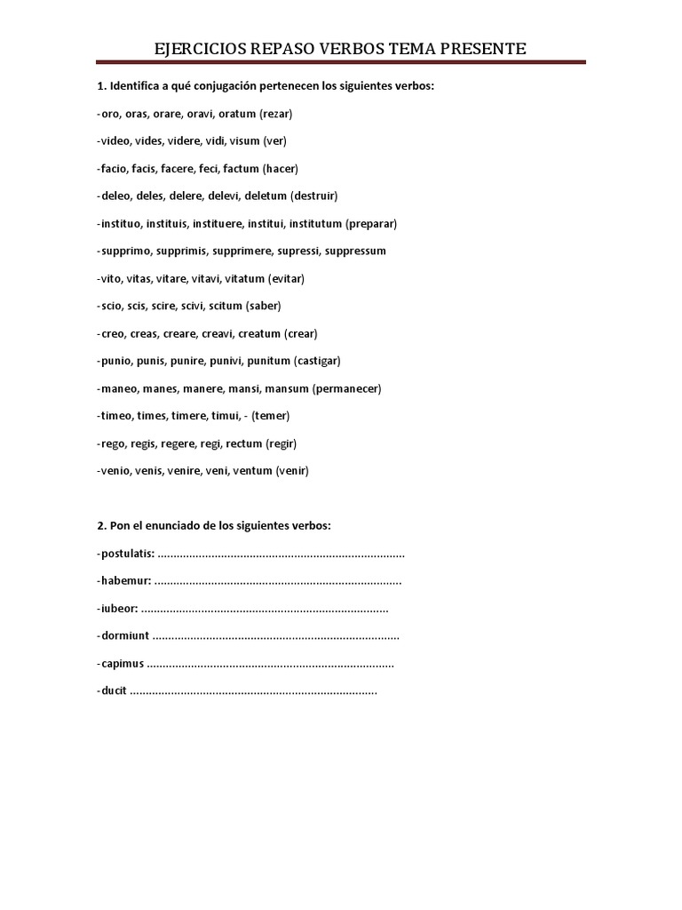 EJERCICIOS REPASO VERBOS TEMA PRESENTE