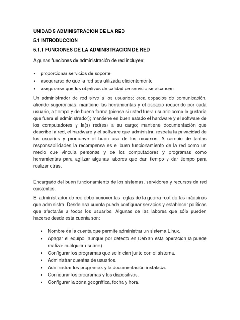 UNIDAD 5 ADMINISTRACION DE LA RED