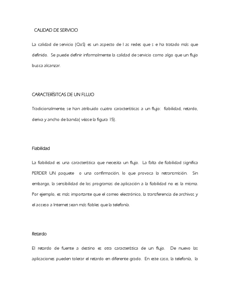 definido. Se puede definir informalmente la calidad de servicio como algo que un flujo