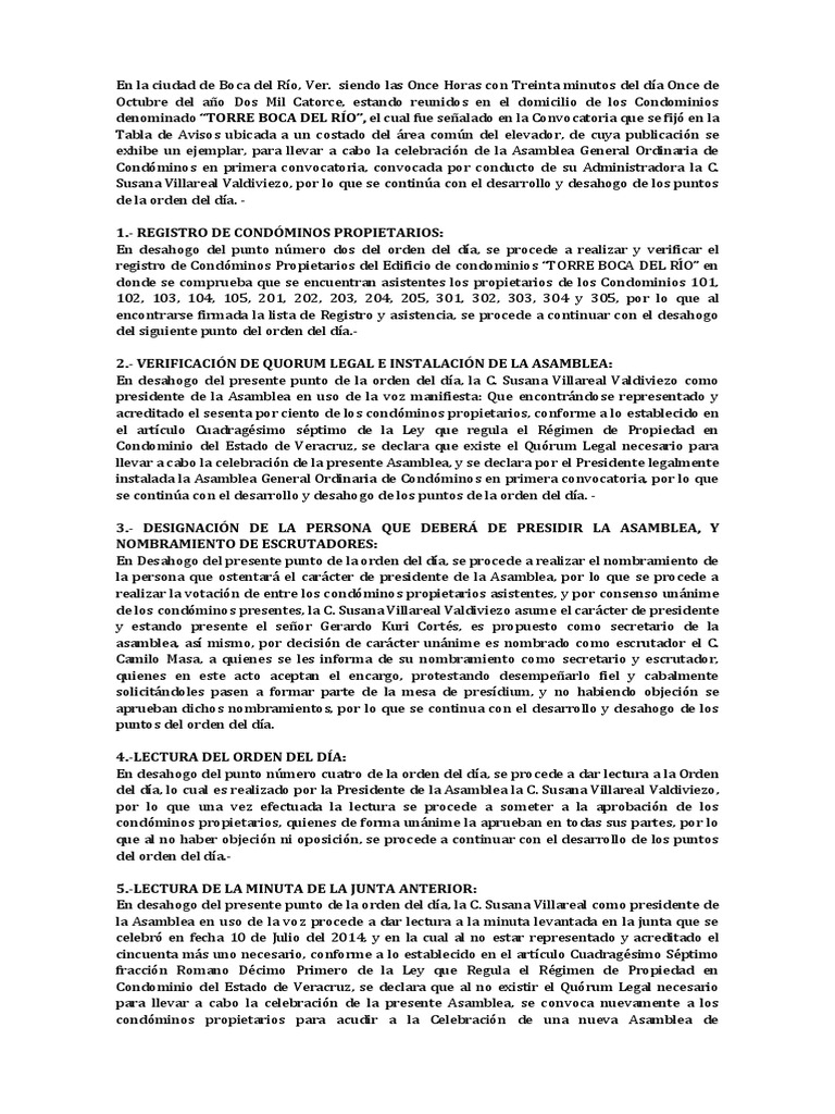Octubre del ao Dos Mil Catorce, estando reunidos en el domicilio de los Condominios