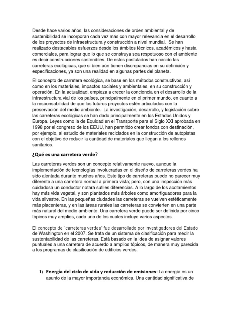 ms natural del medio ambiente. Una carretera verde puede ser definida por cinco