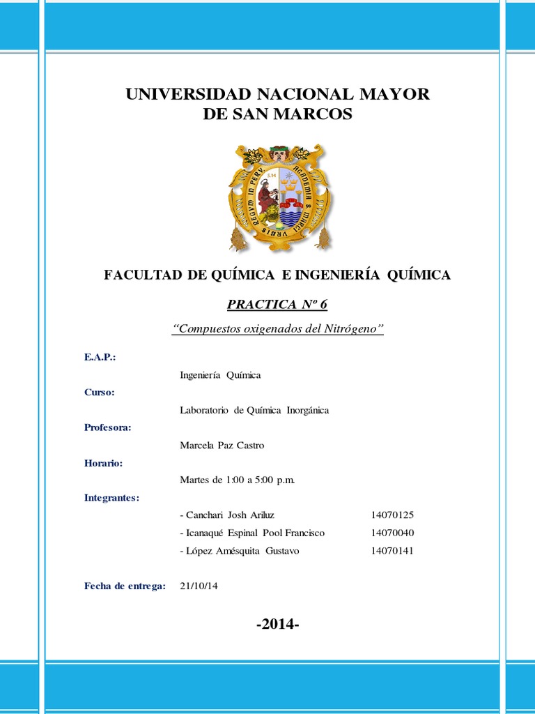 FACULTAD DE QUMICA E INGENIERA QUMICA