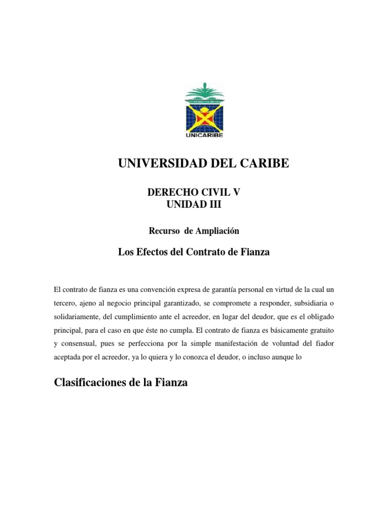 Los Efectos del Contrato de Fianza