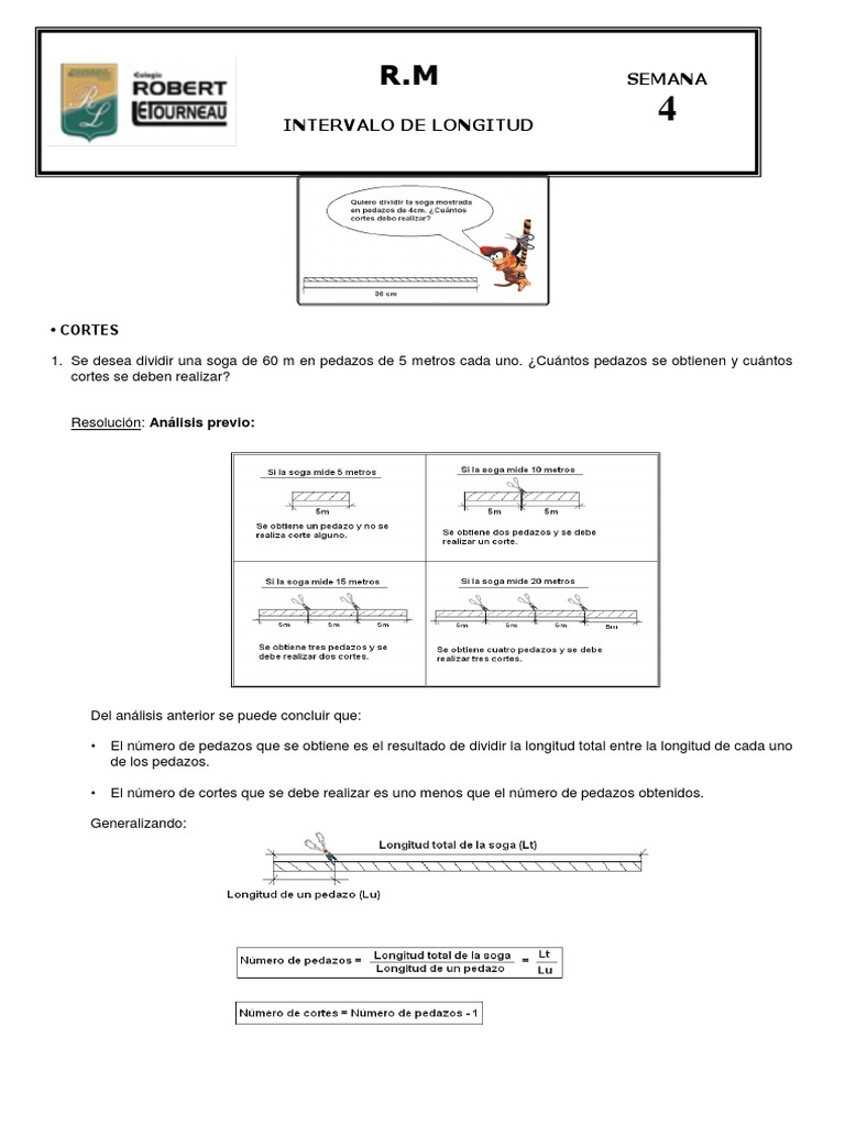 1. Se desea dividir una soga de 60 m en pedazos de 5 metros cada uno. Cuntos pedazos se obtienen y cuntos