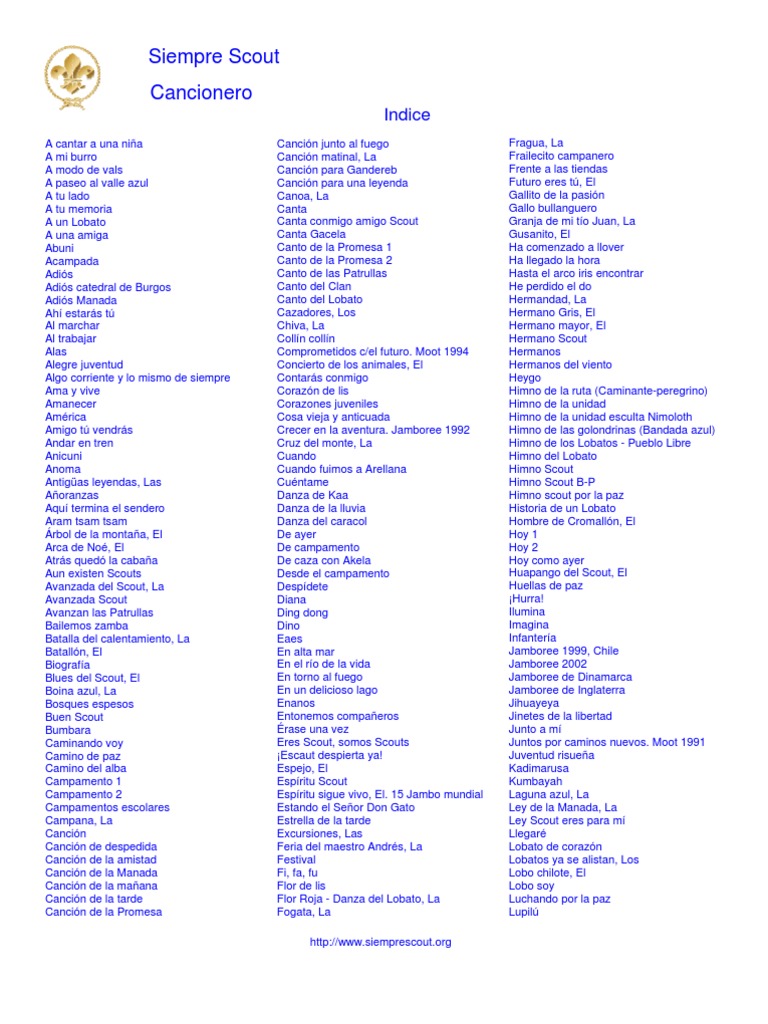 Antigüas leyendas, Las Cuéntame Himno Scout B-P