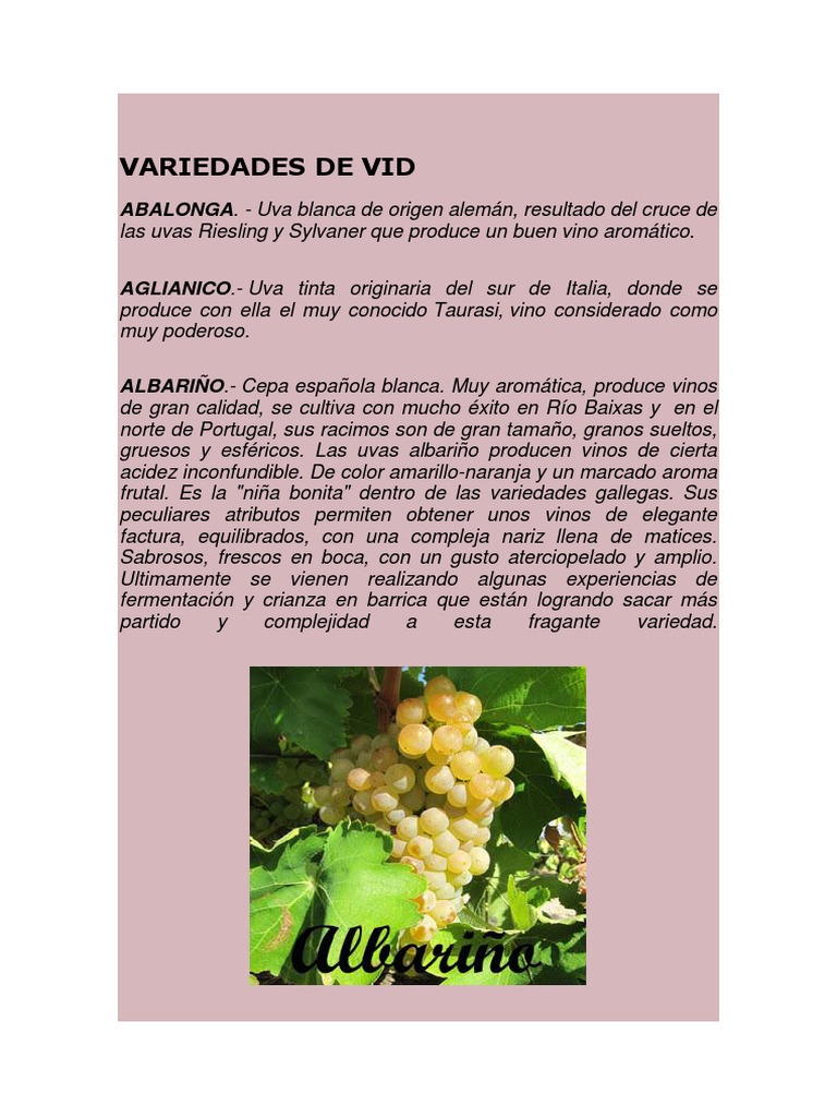 ALBARIO.- Cepa espaola blanca. Muy aromtica, produce vinos