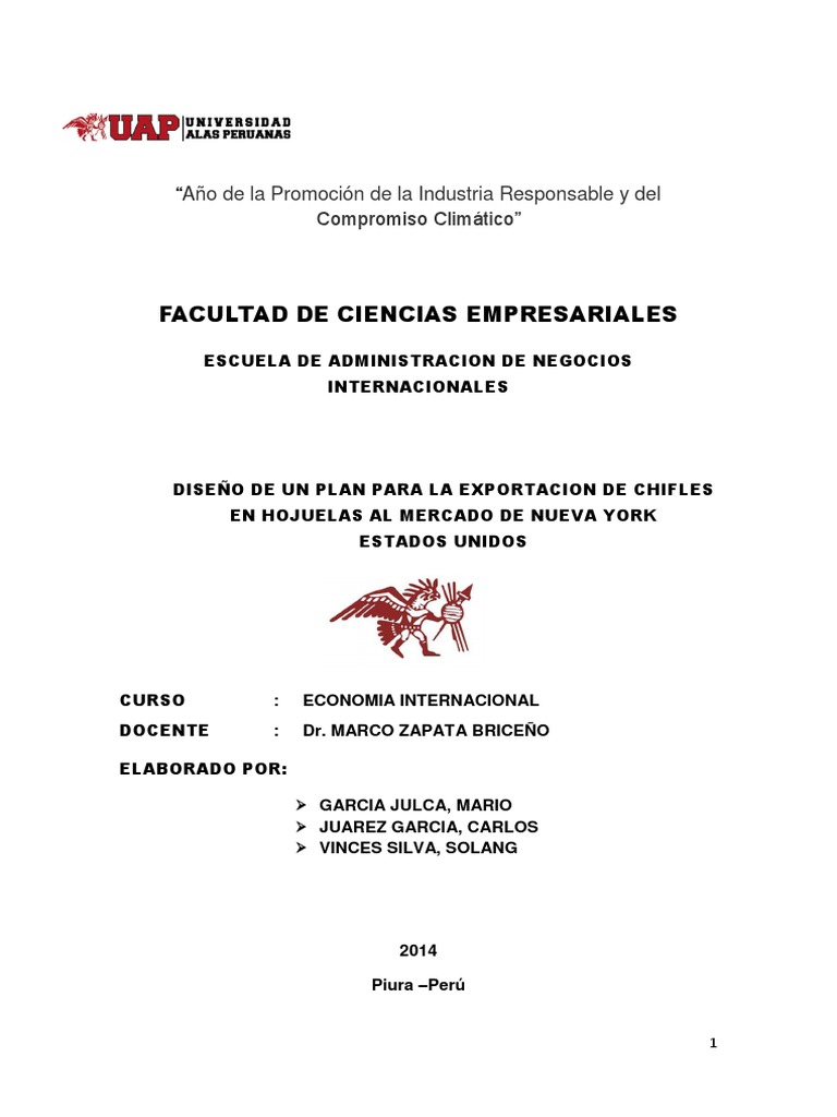 DISEO DE UN PLAN PARA LA EXPORTACIN DE CHIFLES