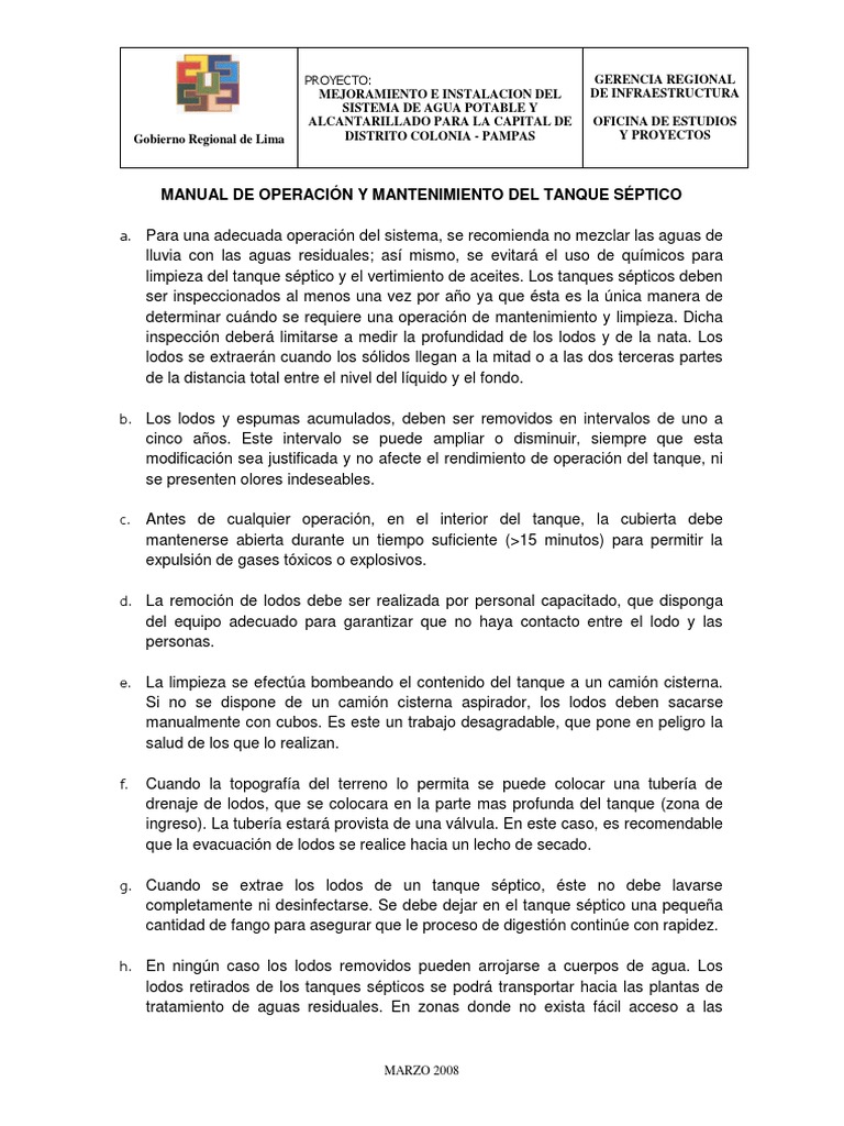 MANUAL DE OPERACIN Y MANTENIMIENTO DEL TANQUE SPTICO