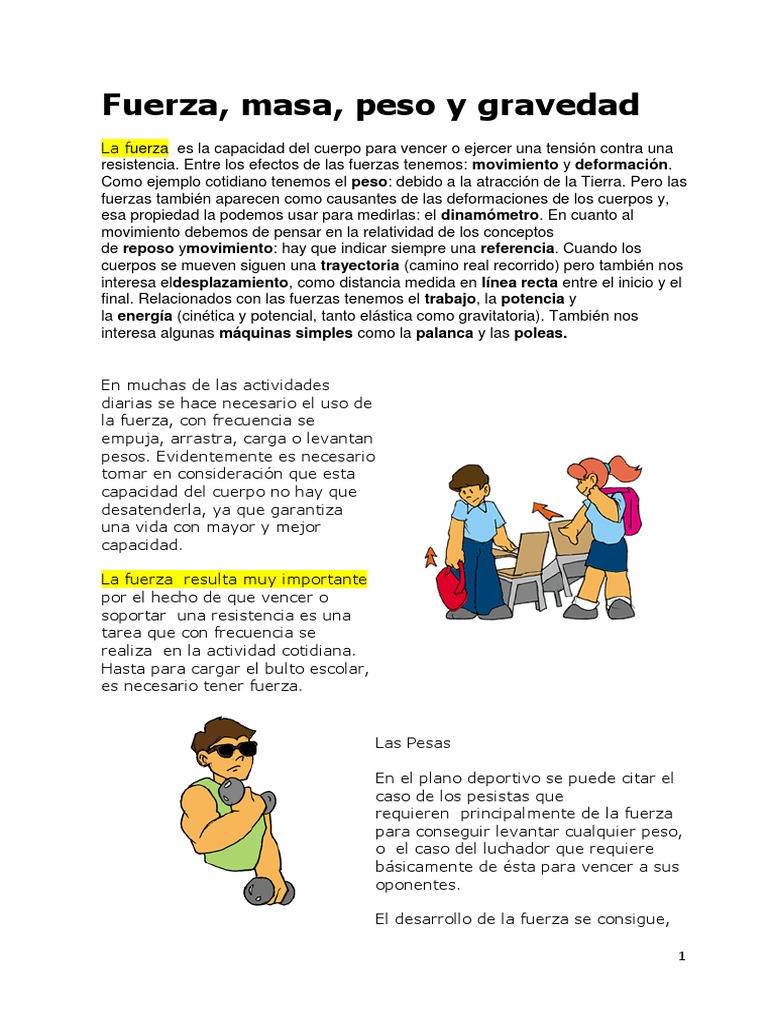 La fuerza es la capacidad del cuerpo para vencer o ejercer una tensin contra una