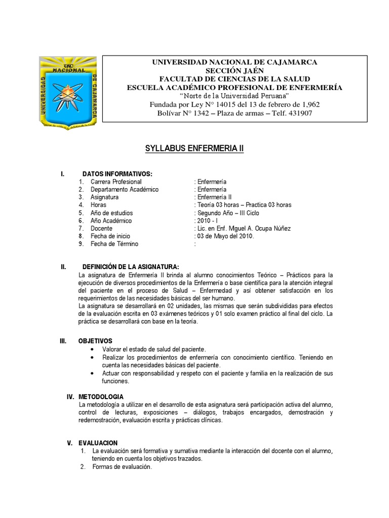 La asignatura de Enfermera II brinda al alumno conocimientos Terico Prcticos para la