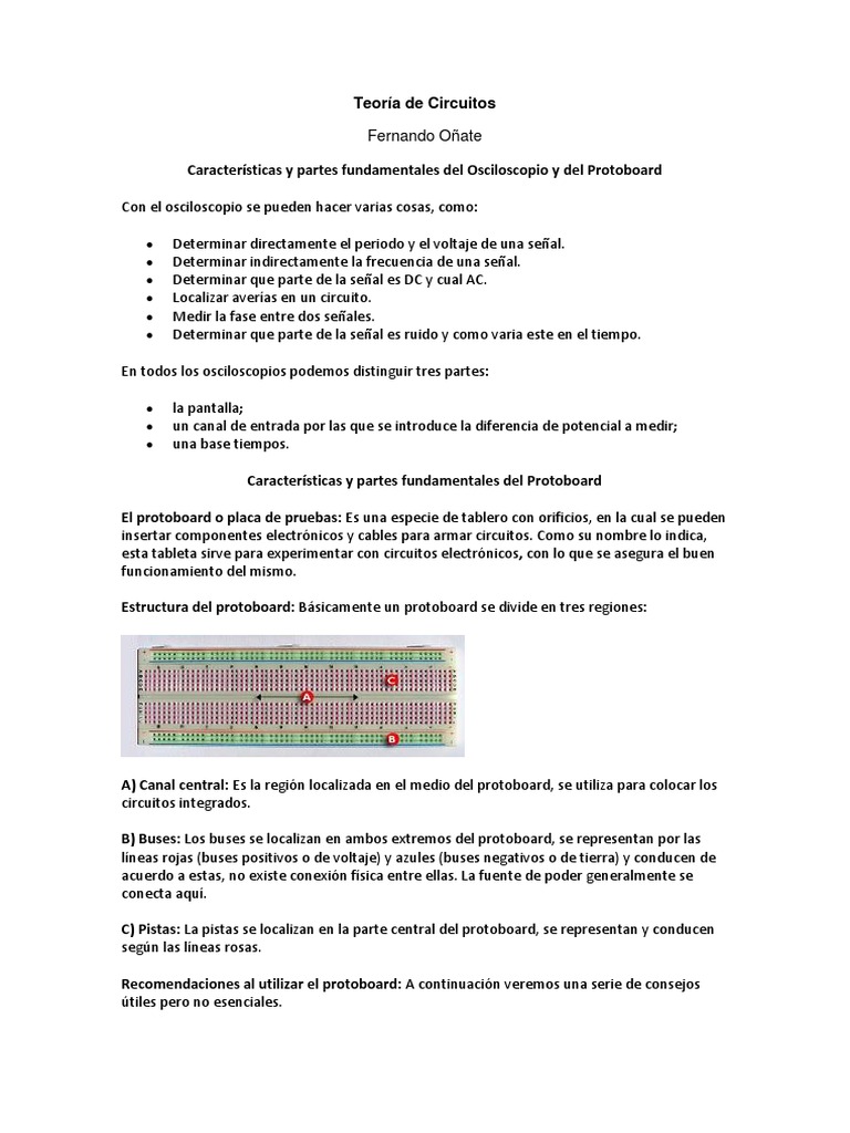 Caractersticas y partes fundamentales del Osciloscopio y del Protoboard