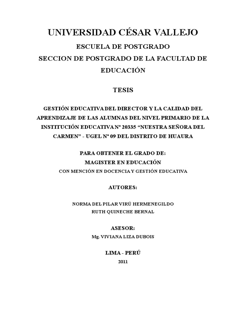 GESTIN EDUCATIVA DEL DIRECTOR Y LA CALIDAD DEL