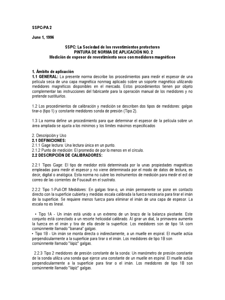 1.1 GENERAL: La presente norma describe los procedimientos para medir el espesor de una