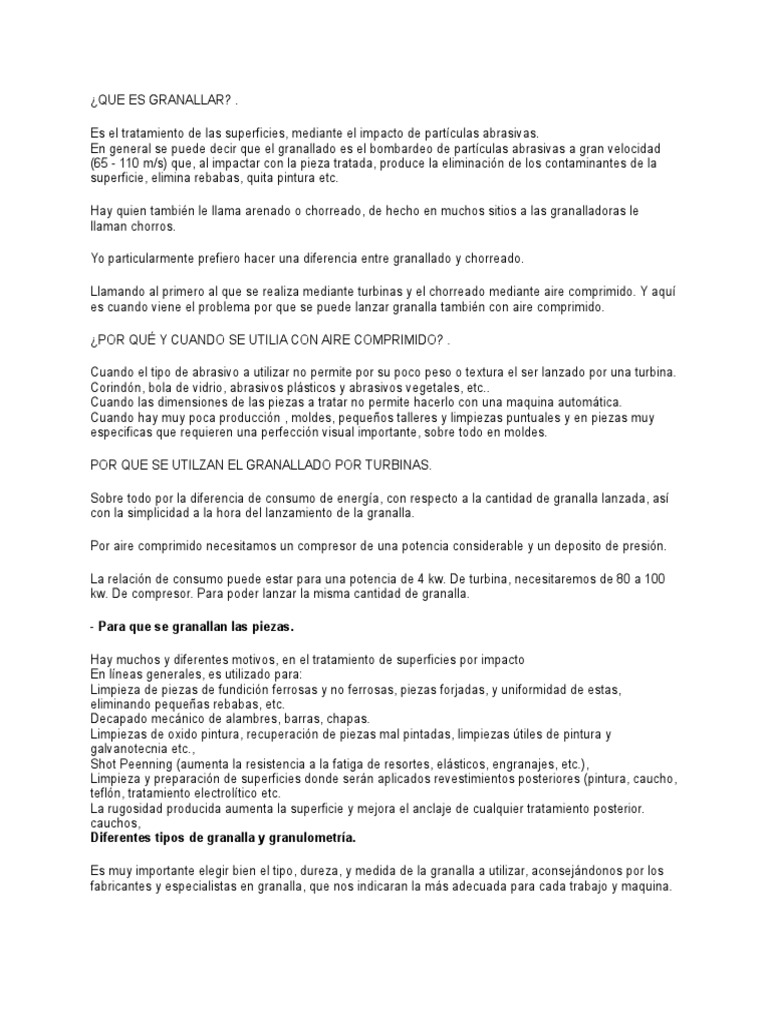 Hay quien tambin le llama arenado o chorreado, de hecho en muchos sitios a las granalladoras le