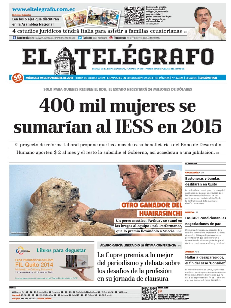 MIRCOLES 19 DE NOVIEMBRE DE 2014 | HORA DE CIERRE: 22:59 | EJEMPLARES EN CIRCULACIN: 24.203 | 48 PGINAS | N 47.325 | ECUADOR | EDICIN FINAL