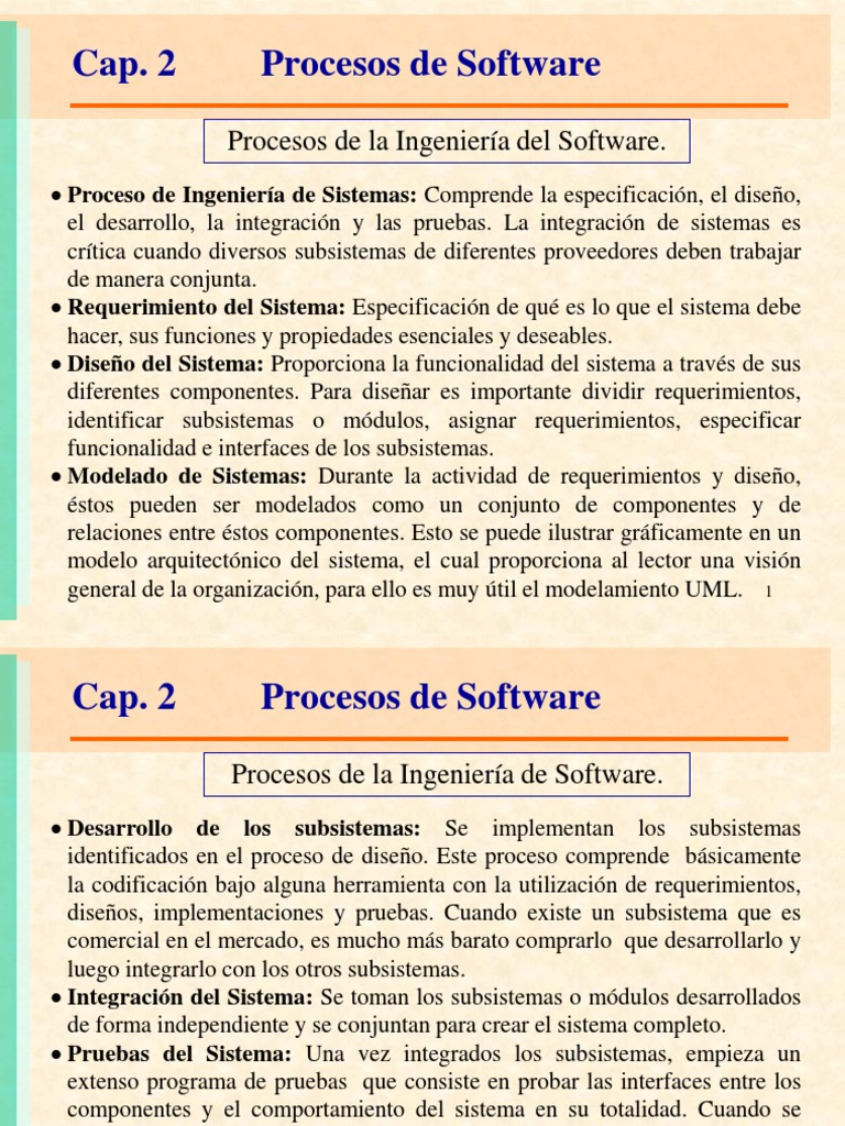 Proceso de Ingeniera de Sistemas: Comprende la especificacin, el diseo,
