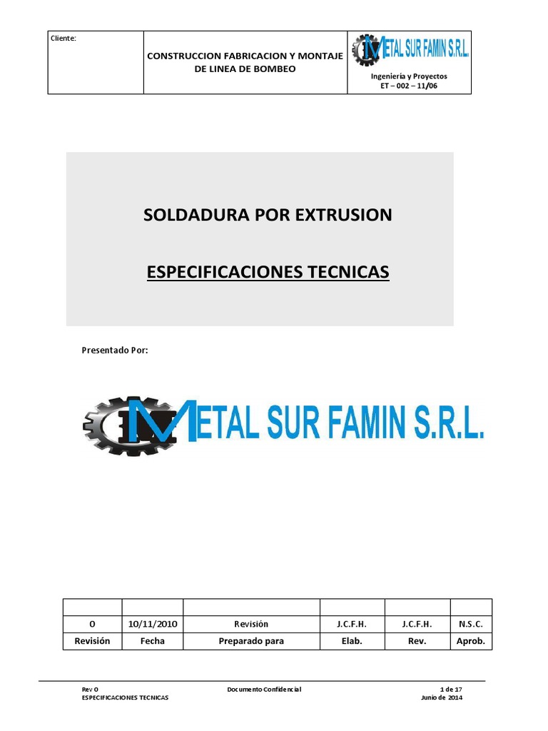 un parche. Salvo en los casos en que no resulte prctico, la soldadura de prueba se efectuar en