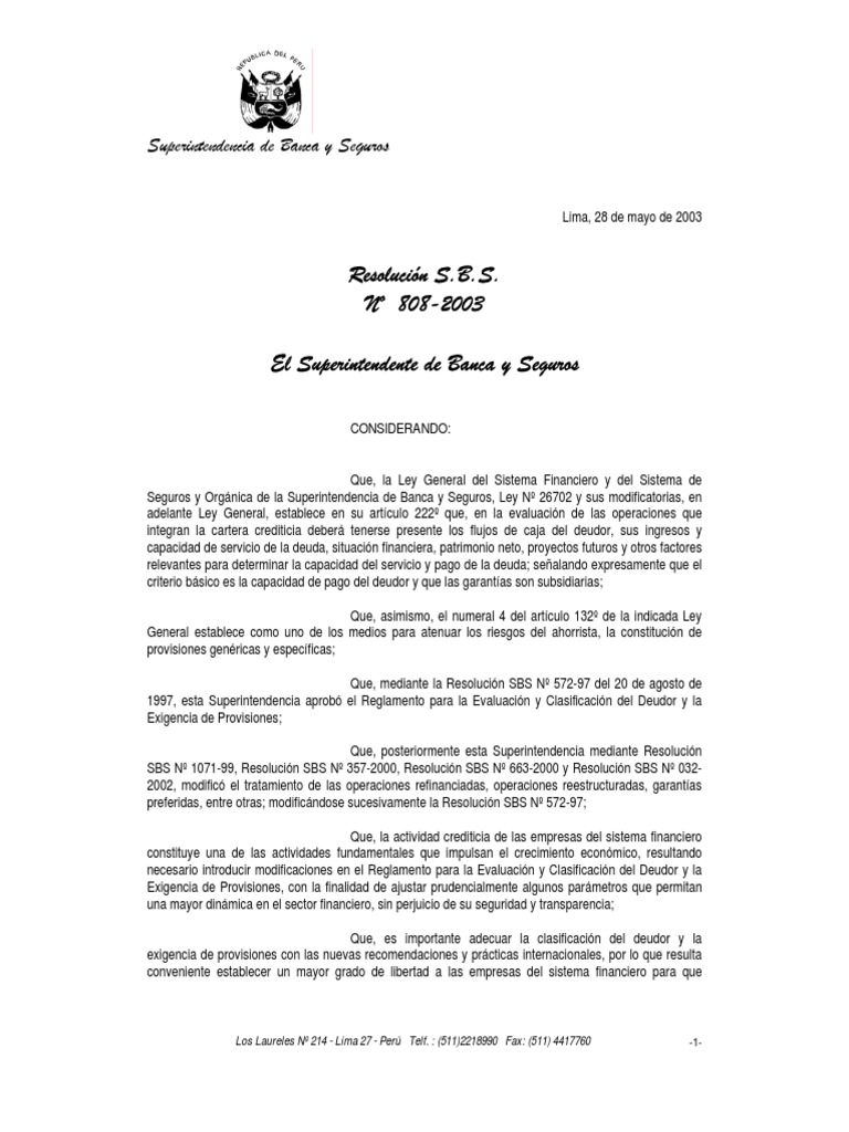 del 24 de octubre de 1997, las Resoluciones SBS N 572-97 del 20 de agosto de 1997, N 992-98 del 23