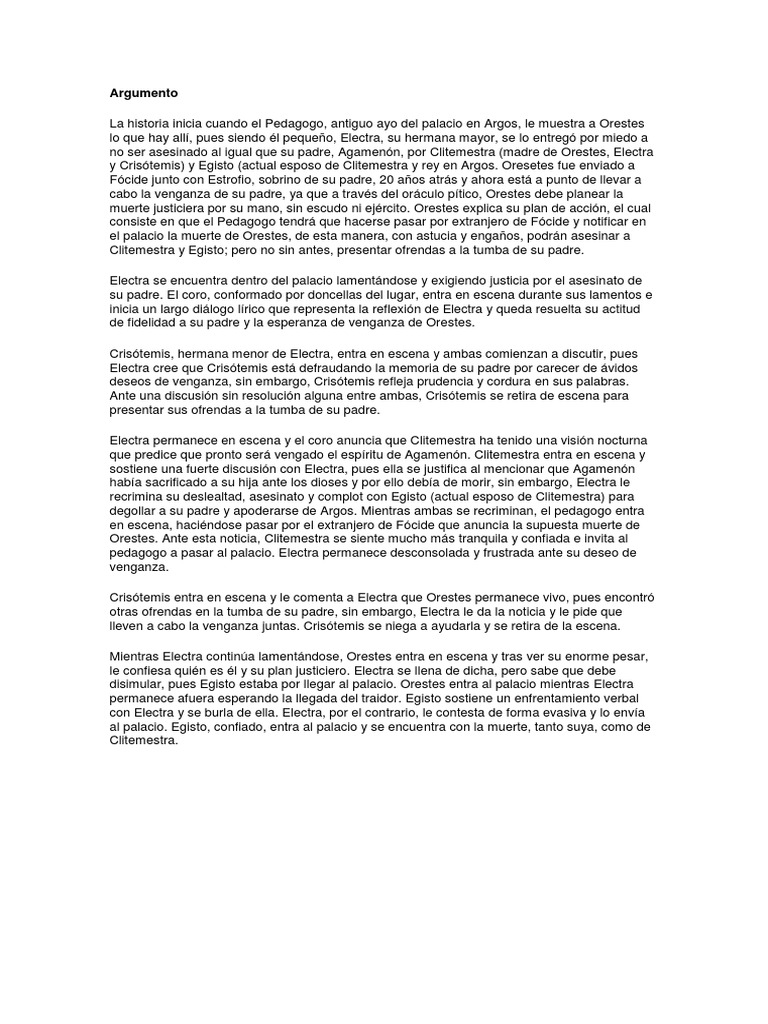 con Electra y se burla de ella. Electra, por el contrario, le contesta de forma evasiva y lo enva