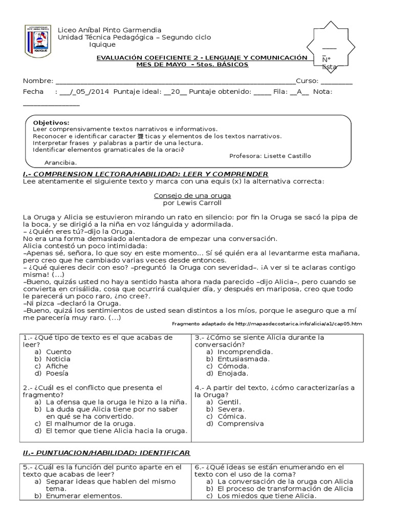 EVALUACIN COEFICIENTE 2 - LENGUAJE Y COMUNICACIN