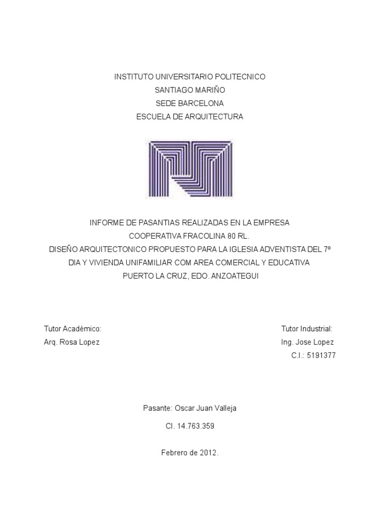 Este informe est orientado en el rea de DISEO ARQUITECTONICO desarrollo