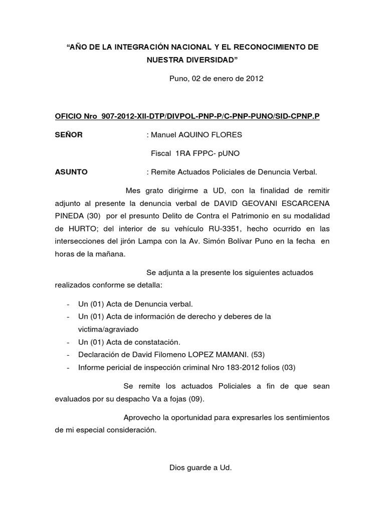 OFICIO Nro 907-2012-XII-DTP/DIVPOL-PNP-P/C-PNP-PUNO/SID-CPNP.P