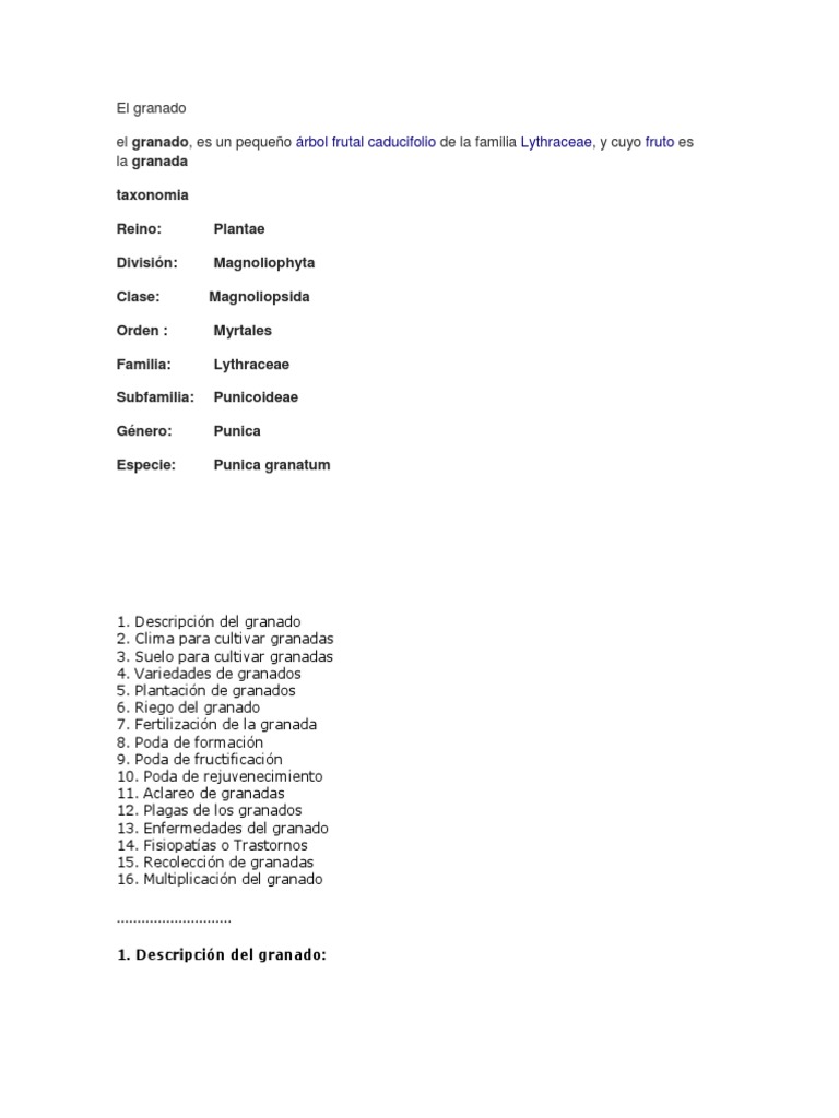 el granado, es un pequeo rbol frutal caducifolio de la familia Lythraceae, y cuyo fruto es