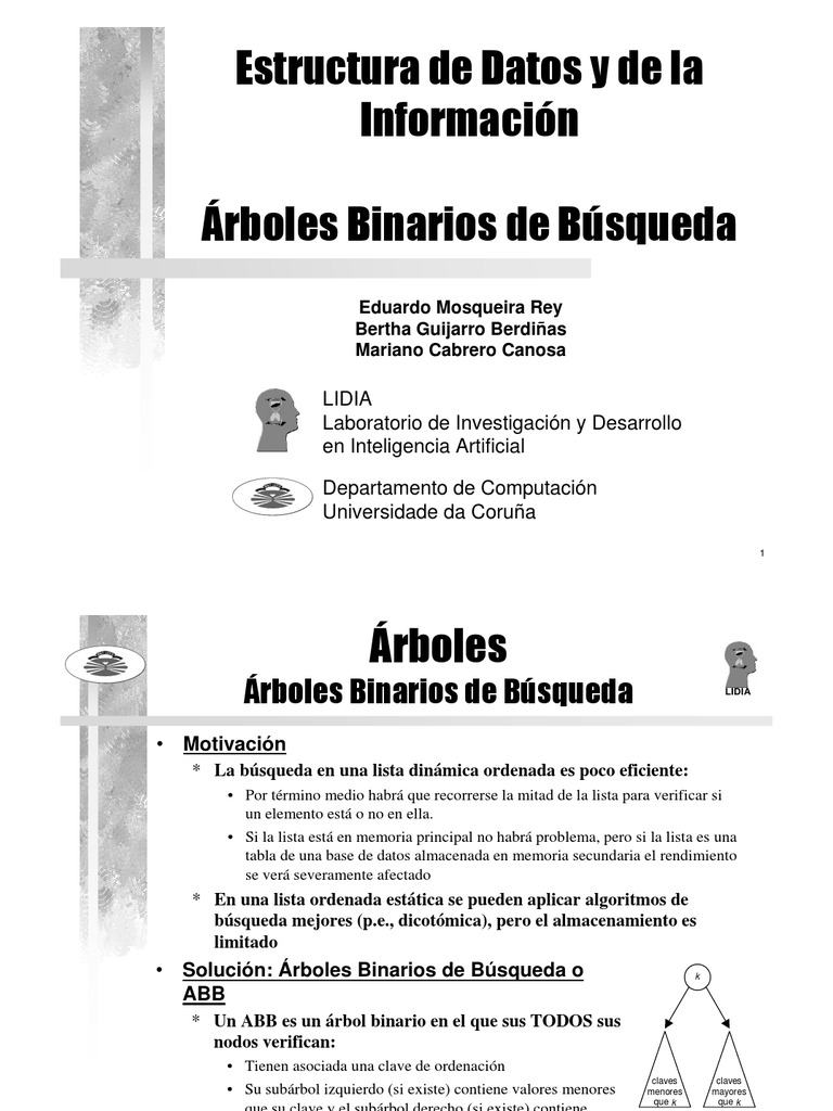 • Si los nodos del árbol que se van insertando en el árbol aparecen árbol