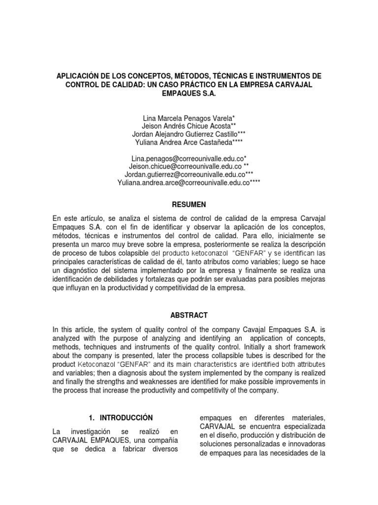En este artculo, se analiza el sistema de control de calidad de la empresa Carvajal