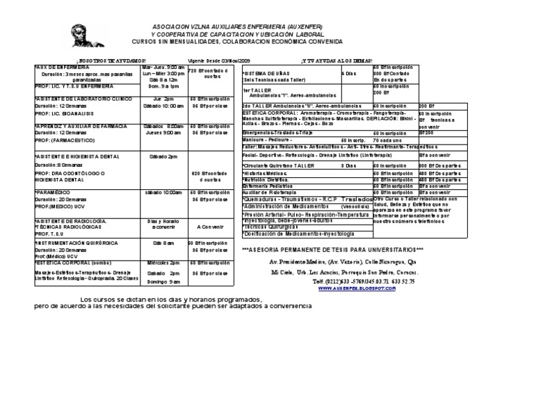 *AUX DE ENFERMERIA Mar- Juev. 9:00 am 50 Bf Inscripciòn