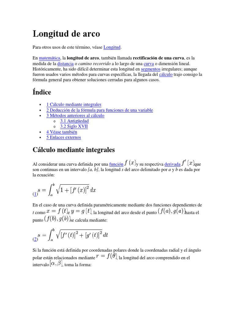 son continuas en un intervalo [a, b], la longitud s del arco delimitado por a y b es dada por