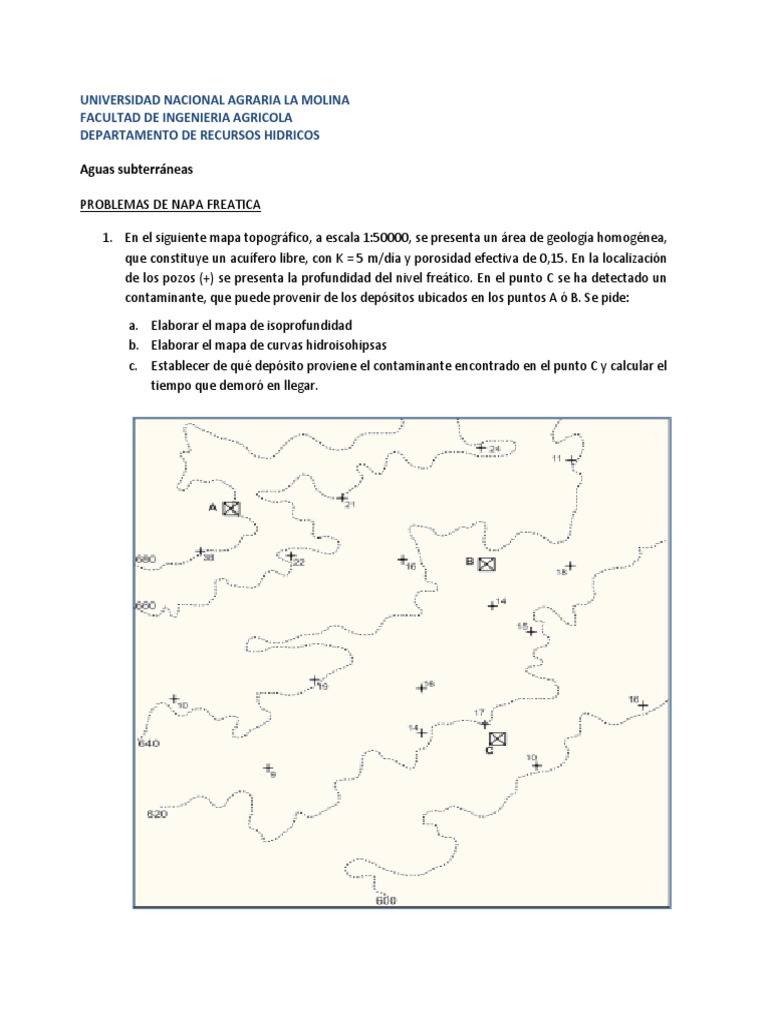 contaminante, que puede provenir de los depsitos ubicados en los puntos A B. Se pide: