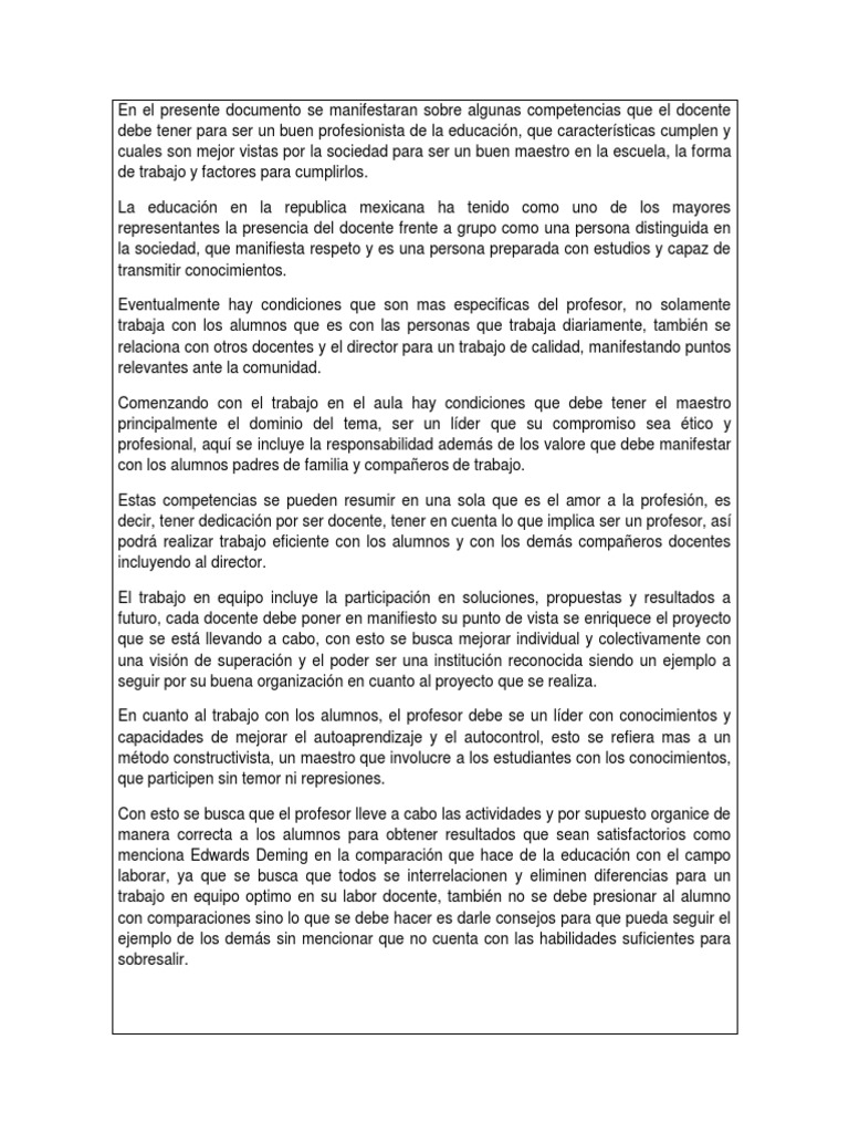 En el presente documento se manifestaran sobre algunas competencias que el docente