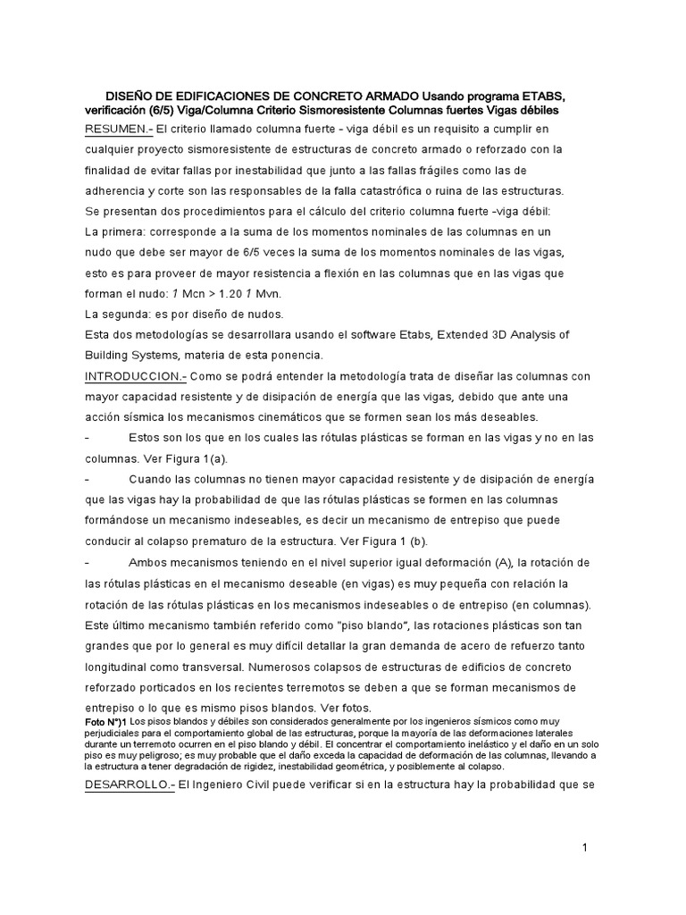 RESUMEN.- El criterio llamado columna fuerte - viga dbil es un requisito a cumplir en
