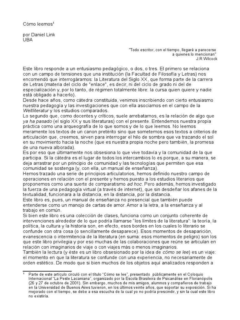 Parte de este artculo circul con el ttulo Cmo se lee, presentado pblicamente en el Coloquio