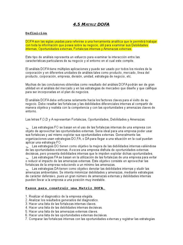 DOFA son las siglas usadas para referirse a una herramienta analtica que le permitir trabajar