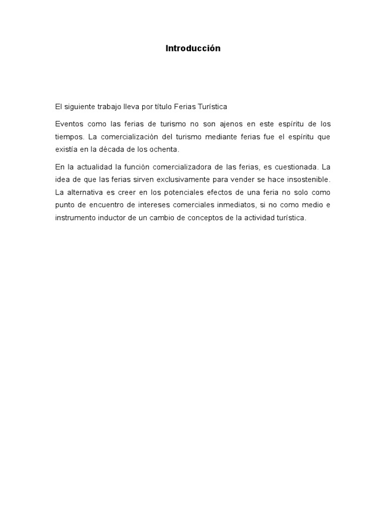 El siguiente trabajo lleva por ttulo Ferias Turstica